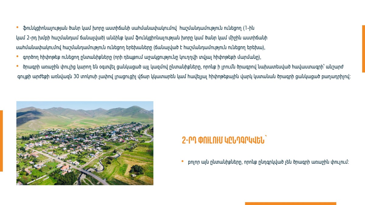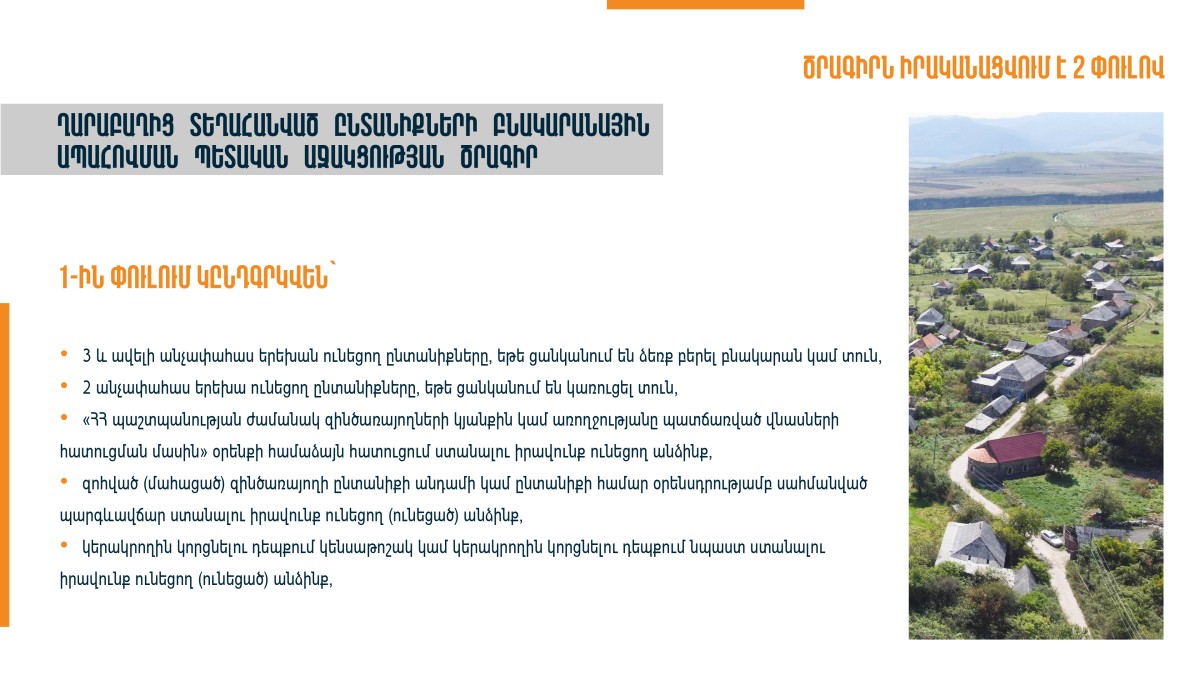 2-րդ փուլում կընդգրկվեն բոլոր այն ընտանիքները, որոնք ընդգրկված չեն ծրագրի առաջին փուլում։